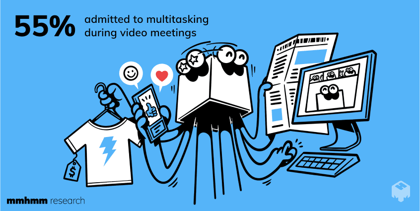 During video meetings, people do all kinds of things they wouldn’t do if they were meeting IRL in a conference room—36% are scrolling through social media, 25% are reading the news, and 23% are shopping online. There’s a lot to compete with if you want to hold people’s attention during a video call!