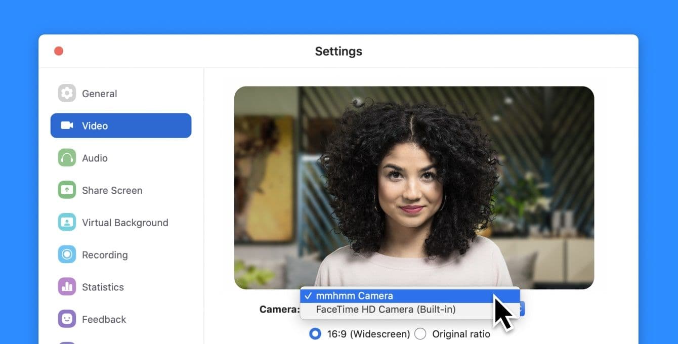 2. Open Zoom and choose the mmhmm virtual camera in settings.