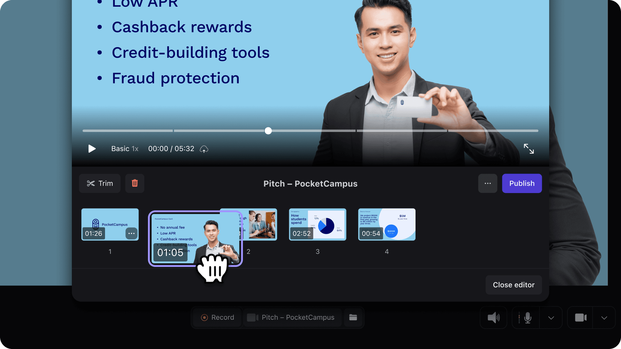 Your business changes quickly—your pitches should keep up. Record and customize videos to meet your audience and the moment.